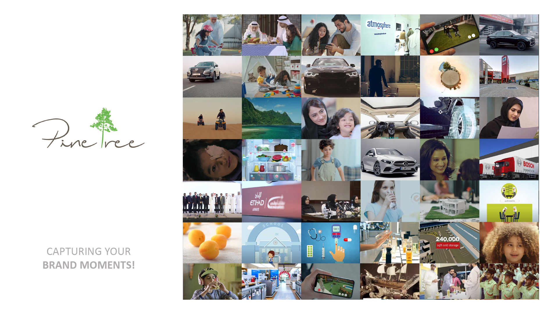 Pine Tree is a hub of creativity with a diverse crew, all driven by a single thought – their passion for advertising. With our team’s extensive experience and knowledge regarding the creative and practical aspects of ad film production, Pine tree FZC works in tandem with our clients’ imagination and expectations, making it a point to deliver their exact requirements. No clients’ work is considered too small or trivial.